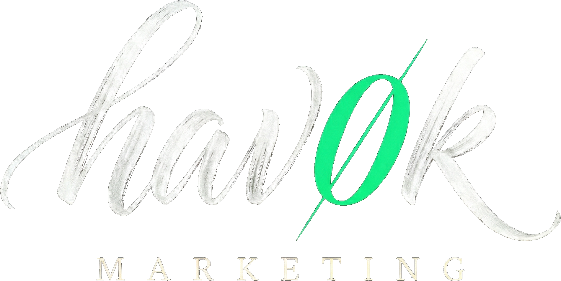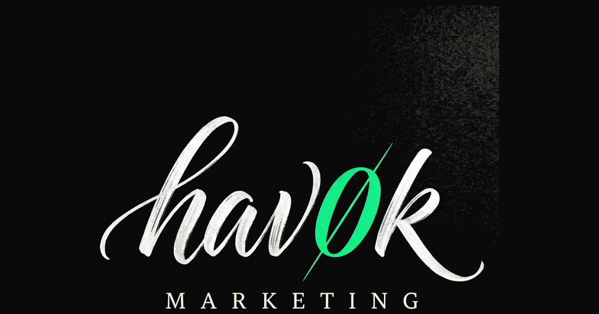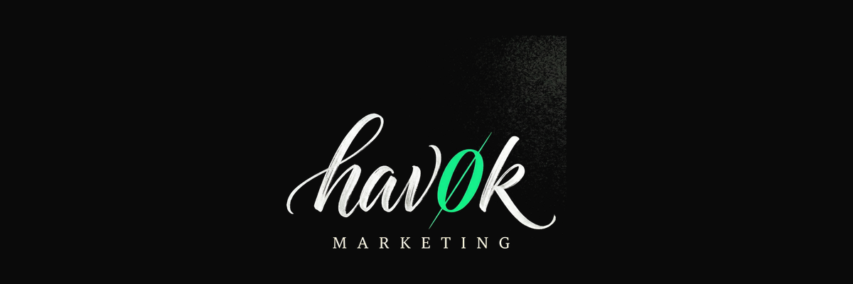 Brush calligraphy wordmark with green slashed zero. “MARKETING” in tracked block sans-serif below. Always use on dark backgrounds. Minimum clear space: height of the “h” on all sides.
